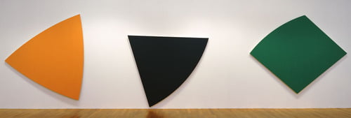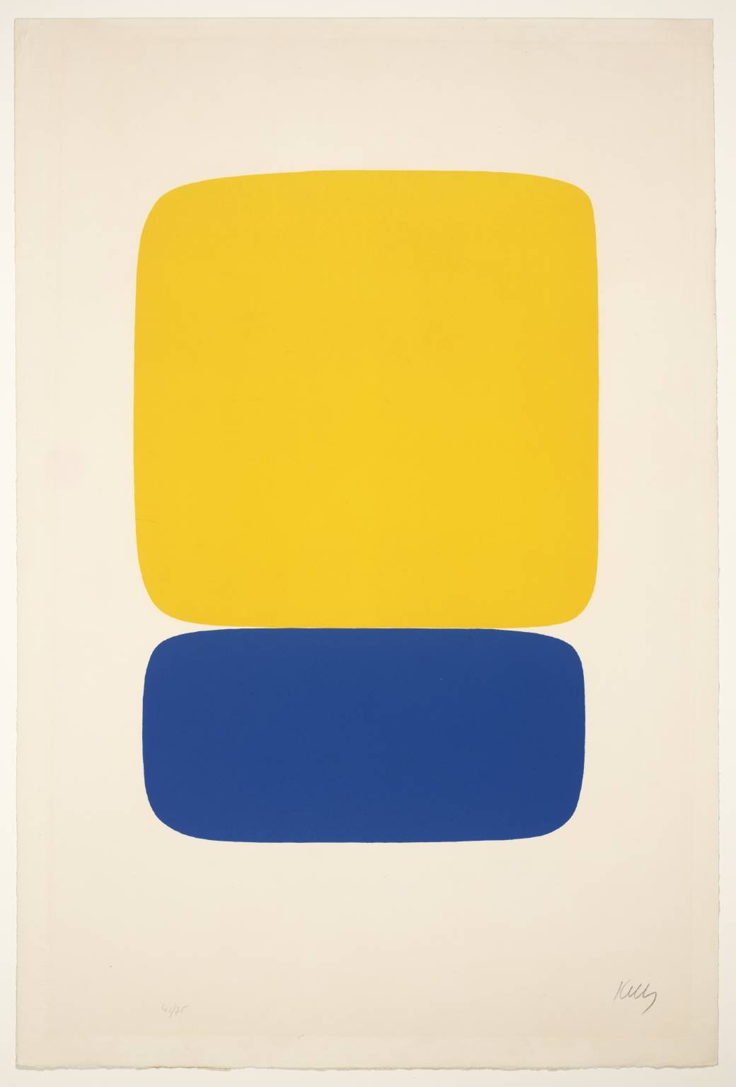 Il s’installe à Paris de 1948 à 1954, où il trouve l’orientation de son art, une simplification abstraite du tableau et une mise en volume de la peinture. Sa peinture ne prend toute sa dimension qu’avec l’espace qui l’entoure, elle n’existe alors plus en tant qu’objet mais comme motif sur le mur du musée. Kelly exploite la peinture comme élément architectural, comme si elle avait un poids et crée ainsi un ensemble de liens et de relations entre les formes et les couleurs qui forme un nouvel équilibre visuel caché.